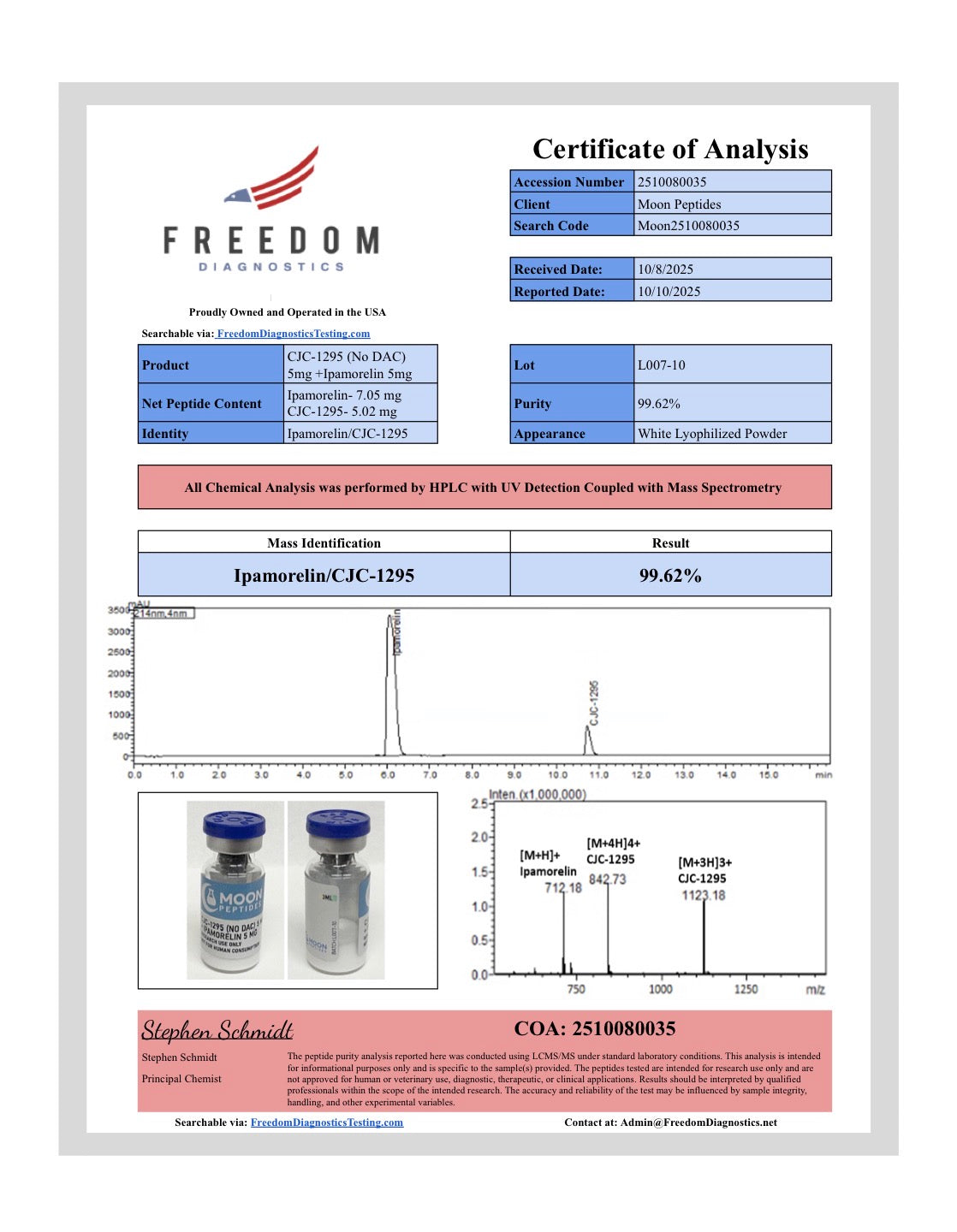 • Concentration: 5mg Ipamorelin + 5mg CJC-1295 (No DAC) per vial